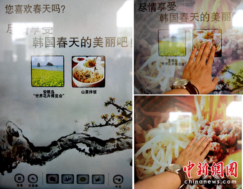 互動觸摸屏,可以瀏覽韓國美麗風(fēng)光和美食文化。中新網(wǎng)記者 王紅綱 攝