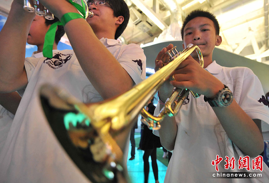 5月2日清晨,來(lái)自玉樹地震災(zāi)區(qū)結(jié)古鎮(zhèn)的藏族小樂手巴東珠,含著姐姐在地震中不幸遇難的悲痛心情,與小白楊中學(xué)生管弦樂團(tuán)來(lái)到上海世博會(huì),為中國(guó)青海館觀眾獻(xiàn)上一曲《在那遙遠(yuǎn)的地方》。他悲歡交融的情懷和演藝,感動(dòng)全場(chǎng)。巴東珠之前還是青海省人民醫(yī)院為地震傷員做藏語(yǔ)翻譯的志愿者。中新社記者 賈國(guó)榮 攝