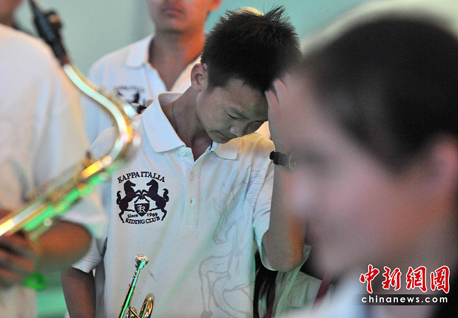 5月2日清晨,來(lái)自玉樹(shù)地震災(zāi)區(qū)結(jié)古鎮(zhèn)的藏族小樂(lè)手巴東珠,含著姐姐在地震中不幸遇難的悲痛心情,與小白楊中學(xué)生管弦樂(lè)團(tuán)來(lái)到上海世博會(huì),為中國(guó)青海館觀眾獻(xiàn)上一曲《在那遙遠(yuǎn)的地方》。他悲歡交融的情懷和演藝,感動(dòng)全場(chǎng)。巴東珠之前還是青海省人民醫(yī)院為地震傷員做藏語(yǔ)翻譯的志愿者。中新社記者 賈國(guó)榮 攝