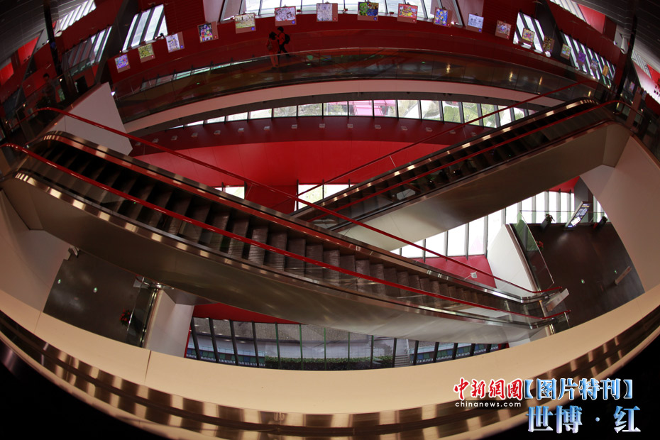 紅色象征著熱量與活力,紅色也象征著興奮與激情,在世博園區(qū)內游覽,總會有一抹濃艷的紅色闖入到記者鏡頭之中,讓世博變得更加火辣。圖為中國館的扶梯。中新社記者 盛佳鵬 攝