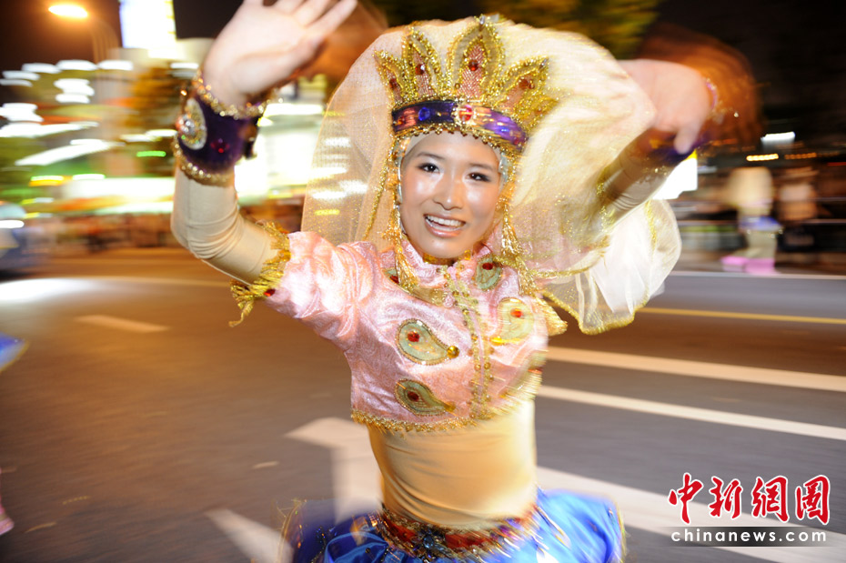 5月2日晚,由一輛輛充滿異域風情的花車和身著盛裝的表演者組成的“歡樂盛裝大巡游”在世博園區(qū)舉行。中新網(wǎng)記者 王紅綱 攝