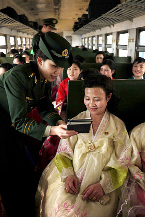 5月2日,載著198名朝鮮紅樓夢劇組演員的專列駛?cè)氲|口岸。由朝鮮國家級藝術(shù)團(tuán)-血海歌劇團(tuán)創(chuàng)作的歌舞劇《紅樓夢》將于5月6日至9日登陸北京電視臺大劇院,這個超大演員陣容亦創(chuàng)下近年來華國外演出人數(shù)之最。圖片來源:新華網(wǎng)