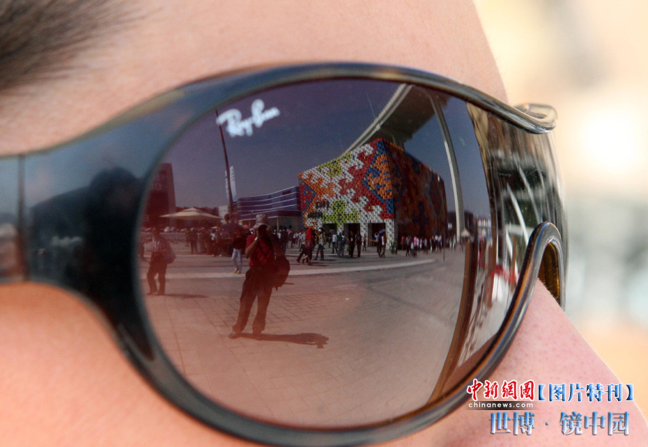 世博園開園3天,天氣一直晴熱,不少游客帶起墨鏡來遮擋刺目的陽光,從鏡片的折射中看世博園,別有一番趣味。中新社記者 湯彥俊攝