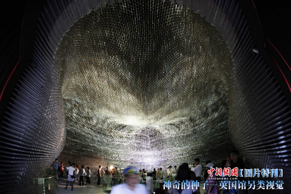 上海世博園開園才數(shù)日,自號“種子圣殿”的英國館已成人氣最旺場館之一。該館由6萬根亞克力桿巧妙構(gòu)成,隨風(fēng)搖動,頗為新奇。其每根桿子里都含有植物種子。中新社記者 盛佳鵬 攝