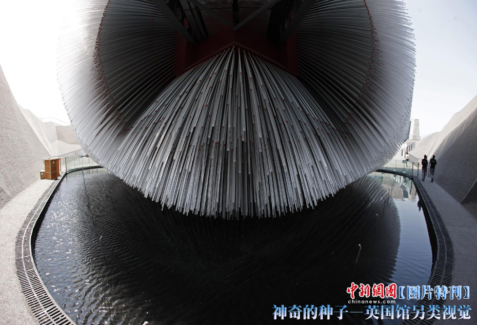 上海世博園開園才數(shù)日,自號“種子圣殿”的英國館已成人氣最旺場館之一。該館由6萬根亞克力桿巧妙構(gòu)成,隨風搖動,頗為新奇。其每根桿子里都含有植物種子。中新社記者 盛佳鵬 攝
