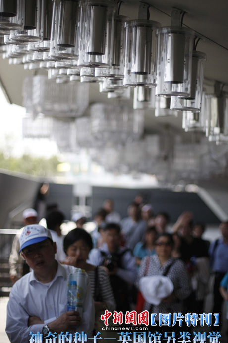 上海世博園開園才數(shù)日,自號“種子圣殿”的英國館已成人氣最旺場館之一。該館由6萬根亞克力桿巧妙構(gòu)成,隨風搖動,頗為新奇。其每根桿子里都含有植物種子。中新社記者 盛佳鵬 攝