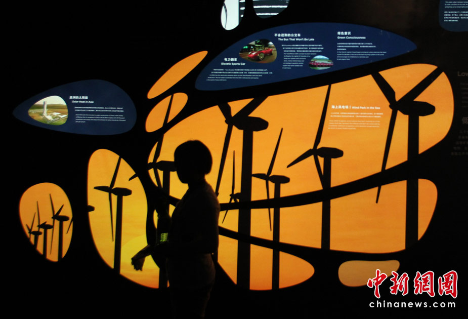 5月3日,觀眾在上海世博會“城市地球館”學(xué)習(xí)低碳知識。中新社發(fā) 蘇丹 攝