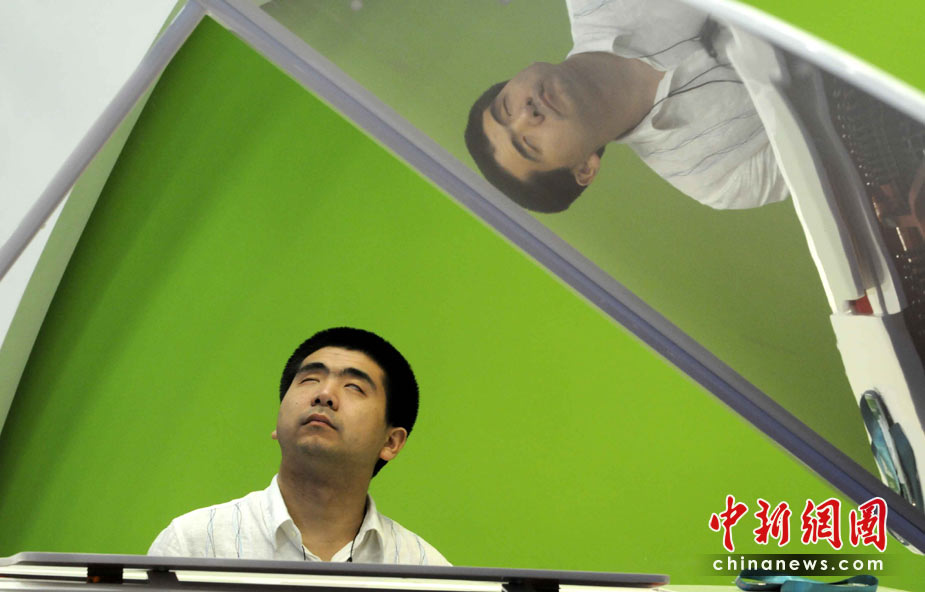 5月4日是上海世博會(huì)第四天,盲人鋼琴家孫巖在生命陽(yáng)光館專(zhuān)設(shè)區(qū)域?yàn)楸姸鄽埣踩撕陀^(guān)眾演奏,導(dǎo)盲犬靜臥在他的腳邊,這是世博會(huì)歷史上第一次為殘疾人設(shè)館。孫巖2005年獲得“日本橫濱第一屆國(guó)際殘疾人鋼琴比賽”金獎(jiǎng),他是中央音樂(lè)學(xué)院有史以來(lái)第一位盲人大學(xué)生和研究生。他的傾情演奏感動(dòng)全場(chǎng),掌聲連連。中新社發(fā) 賈國(guó)榮 攝