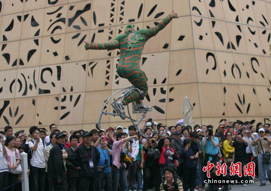 5月4日,上海世博會(huì)北京周花車巡游演員在世博園街頭表演。當(dāng)日,世博會(huì)北京周開幕。 中新社發(fā) 蘇丹 攝