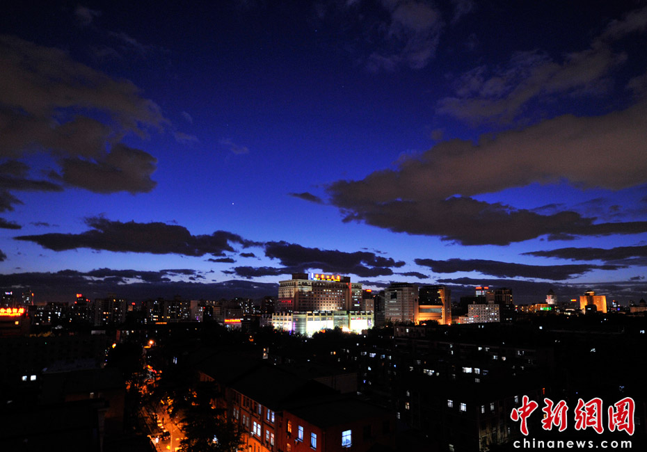 5月5日立夏,京城降雨今晨剛剛結(jié)束,霧氣伺機又起。傍晚時分,隨著四級北風(fēng)的到來,京城天氣逐漸轉(zhuǎn)晴,霧氣慢慢消散天空彤云密布夜色瑰麗。中新網(wǎng)記者 金碩 攝