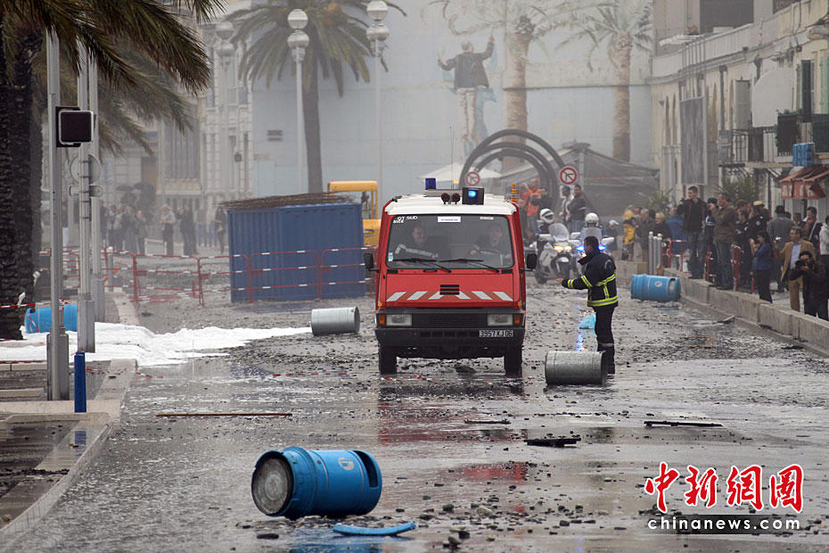 近日,在法國(guó)南部城市尼斯,巨浪襲擊城市的海岸后造成城市道路癱瘓。法國(guó)南部部分地區(qū)遭遇大風(fēng)和巨浪,使當(dāng)?shù)亟煌ê凸╇娛艿讲煌潭鹊挠绊。圖片來(lái)源:中國(guó)新聞網(wǎng)