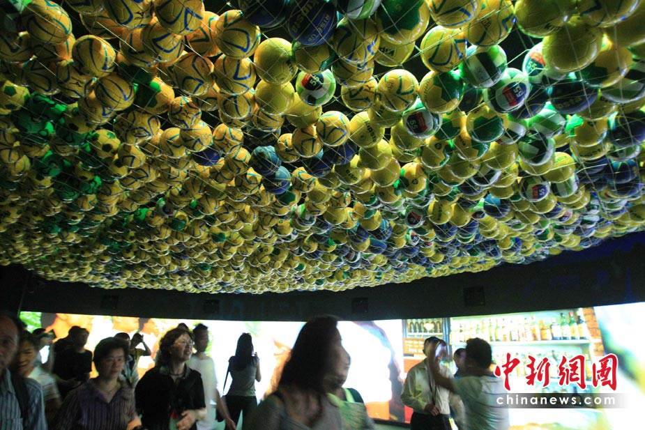 5月6日,上海世博會參觀者在巴西館“足球天下”內(nèi),感受即將來臨的世界杯。中新社發(fā) 潘索菲 攝