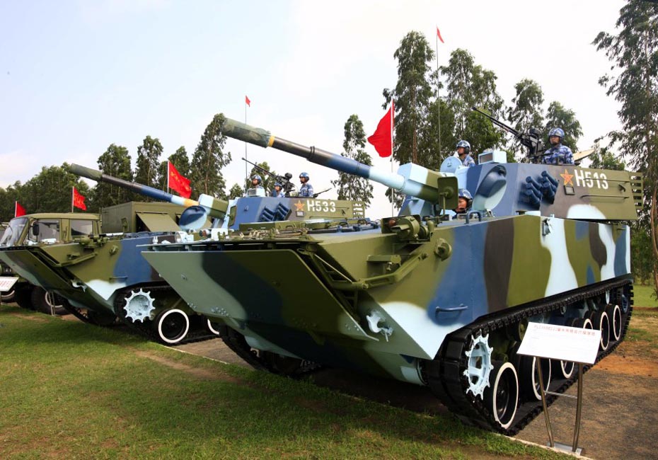 海軍陸戰(zhàn)隊(duì)兩棲突擊車在慶典儀式上進(jìn)行展示。圖片來(lái)源:新華網(wǎng) 查春明攝