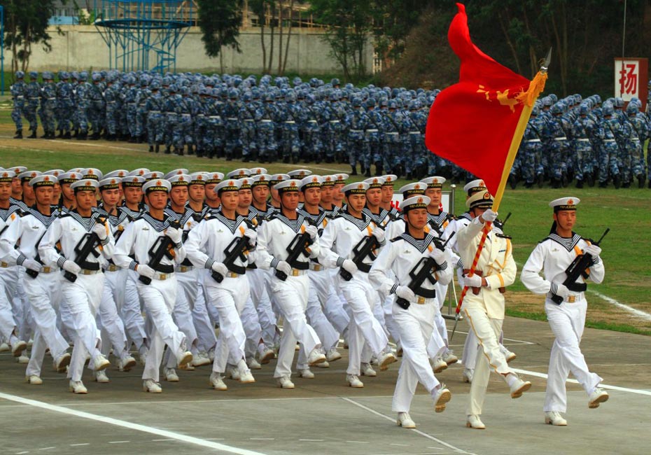 海軍陸戰(zhàn)隊(duì)儀仗隊(duì)通過主席臺(tái)。圖片來源:新華網(wǎng) 查春明攝