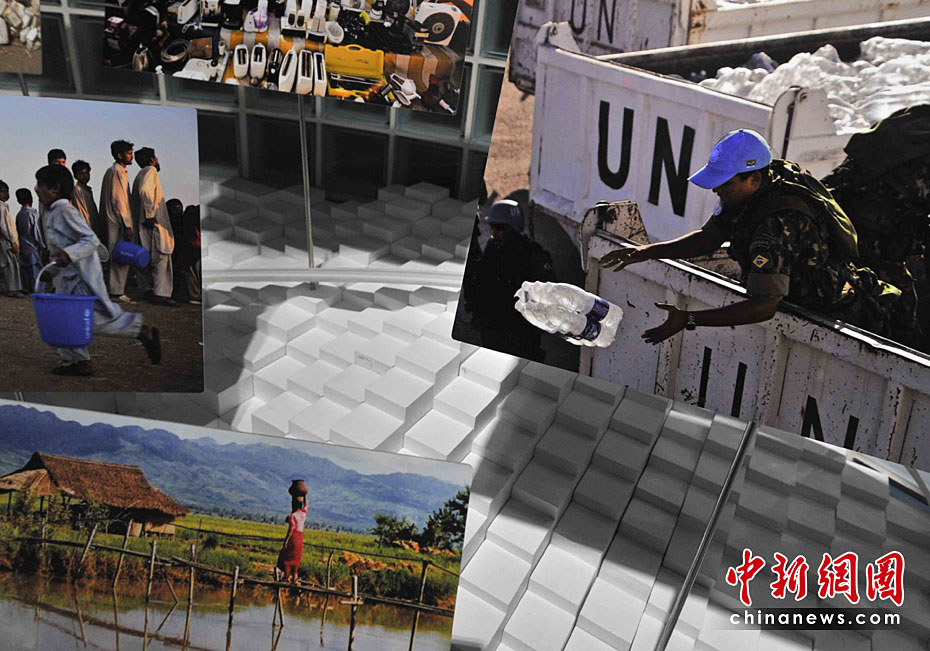 一所藍(lán)色的簡樸平房,在5月開園的上海世博會(huì)大道邊上,極不顯眼。但是,聯(lián)合國聯(lián)合館的鮮明會(huì)標(biāo),特別吸引人。這個(gè)展館集中了世界衛(wèi)生組織、世界銀行和聯(lián)合國的兒童基金會(huì)、糧農(nóng)組織、教科文組織等22個(gè)機(jī)構(gòu)。圖片來源:中國新聞網(wǎng) 賈國榮 攝