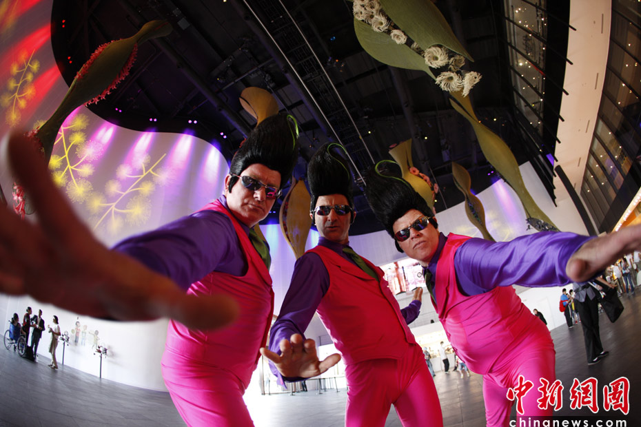 澳大利亞頂級街頭表演劇團“鉻合金(Chrome)”在澳大利亞國家館閃亮登場,他們以幽默風趣的表演、優(yōu)美動聽的音樂和與觀眾之間的巧妙互動,吸引了參觀者的注意力。中新社記者 盛佳鵬 攝