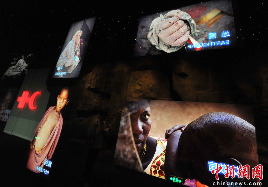 5月8日是上海世博會(huì)的紅十字會(huì)和紅新月會(huì)館榮譽(yù)日,兩會(huì)在簡樸如醫(yī)療帳篷的館里,運(yùn)用聲光電展示大量紀(jì)實(shí)圖片,于大災(zāi)大難中顯示救死扶傷的大愛,可歌可泣。這兩個(gè)鮮紅標(biāo)志的人道救援組織,一百多年來遵循著堅(jiān)定不移的宗旨——“經(jīng)歷戰(zhàn)爭與災(zāi)難的黑暗,我們更需要人道的光芒”。世界的未來,還將依靠它紅色的光明,去驅(qū)散天災(zāi)人禍的陰影。中新社發(fā) 賈國榮 攝