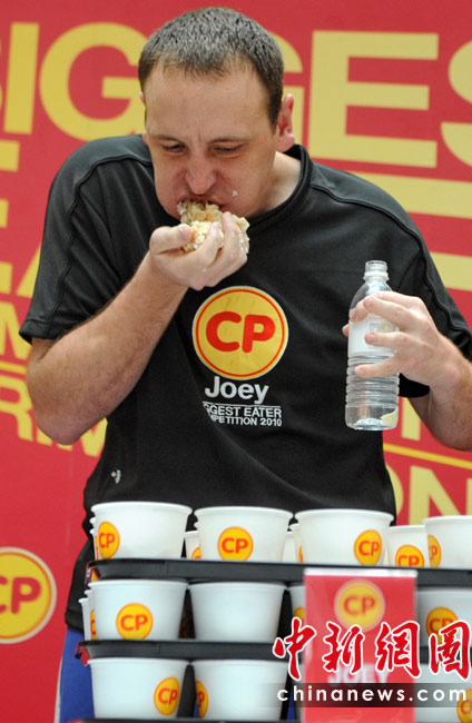 5月9日,新加坡舉行了一場(chǎng)別開(kāi)生面的世界吃餛飩大賽,來(lái)自全球各地的多名大胃王在比賽中一較高下。最終在8分鐘內(nèi)狂吞380個(gè)的美國(guó)選手獲得了冠軍。圖為最終獲得冠軍的美國(guó)選手。