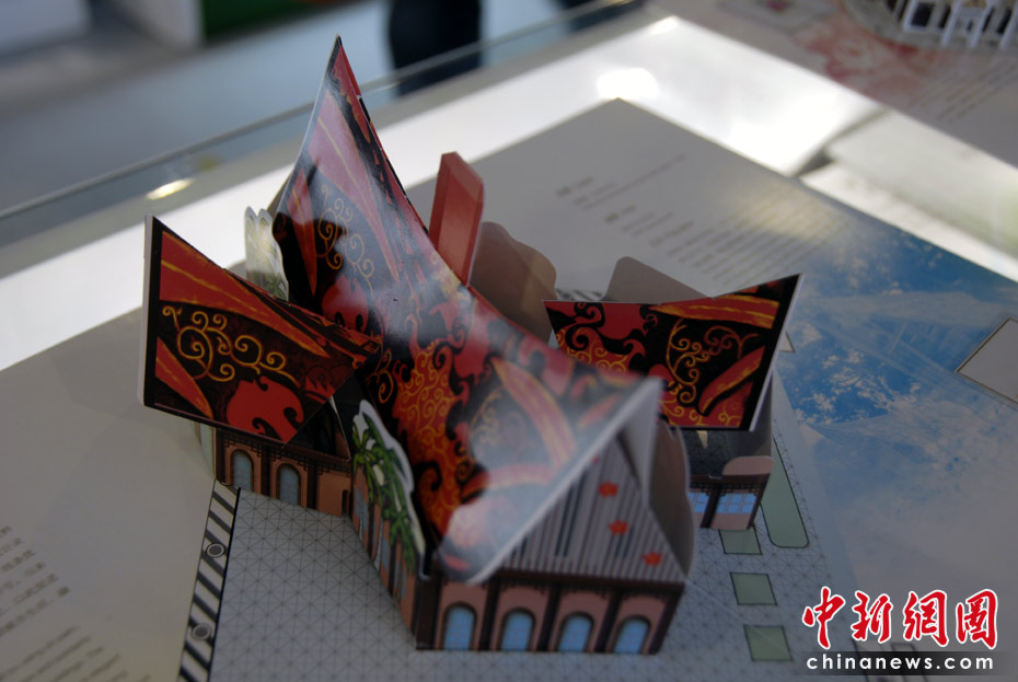 世博園區(qū)內(nèi)的特許商品店里,折紙場(chǎng)館惟妙惟肖,頗受游客的喜愛。圖為馬來西亞館紙模型。中新網(wǎng)記者 吳歆 攝