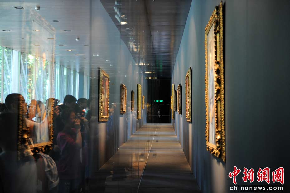 圖為法國(guó)館內(nèi)的國(guó)寶油畫。 中新社記者 廖攀 攝