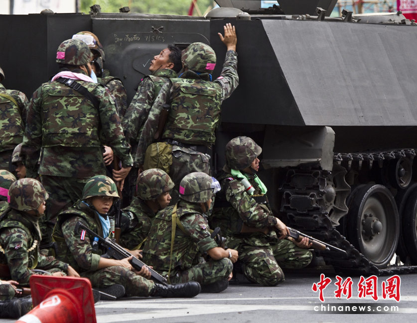 19日清晨,數(shù)百名軍警在武裝車輛的掩護下向反政府示威者在曼谷的大本營聚集。自上周四紅衫軍與政府在曼谷爆發(fā)沖突以來,已經(jīng)導(dǎo)致39人死亡,數(shù)百人受傷。