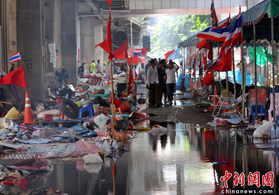 泰國紅衫軍領(lǐng)導(dǎo)人乍都蓬19日下午1時決定,向曼谷警方投降。同時向警方投降的還包括納塔兀、素蓬、翁醫(yī)師等紅衫軍核心領(lǐng)導(dǎo)人。紅衫軍領(lǐng)導(dǎo)人納塔兀責(zé)其支持者宣布,結(jié)束紅衫軍已持續(xù)了兩個多月的集會示威行動。圖片來源:中國新聞網(wǎng)