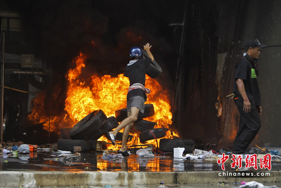泰國軍方19日清場,希望將陷入內(nèi)戰(zhàn)邊緣的曼谷拯救出來,雖然紅衫軍節(jié)節(jié)敗退,但有激進(jìn)分子未肯罷休,四處放火,電視臺、股票交易所、電力公司、幾間銀行、商場戲院都遭殃,商場和便利店亦成為搶掠目標(biāo)。據(jù)報(bào)曼谷有27處地方起火,泰國最大的商場Central World、Siam Square和Siam Paragon三大購物中心被縱火,其中Central World燒通頂,據(jù)報(bào)快將倒塌。