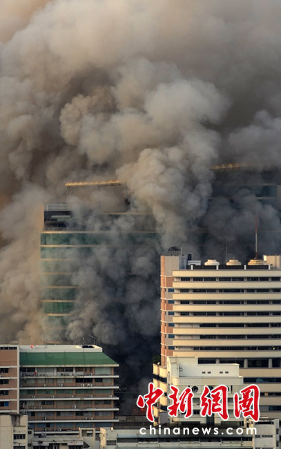 泰國軍方19日清場,希望將陷入內(nèi)戰(zhàn)邊緣的曼谷拯救出來,雖然紅衫軍節(jié)節(jié)敗退,但有激進(jìn)分子未肯罷休,四處放火,電視臺、股票交易所、電力公司、幾間銀行、商場戲院都遭殃,商場和便利店亦成為搶掠目標(biāo)。據(jù)報曼谷有27處地方起火,泰國最大的商場Central World、Siam Square和Siam Paragon三大購物中心被縱火,其中Central World燒通頂,據(jù)報快將倒塌。