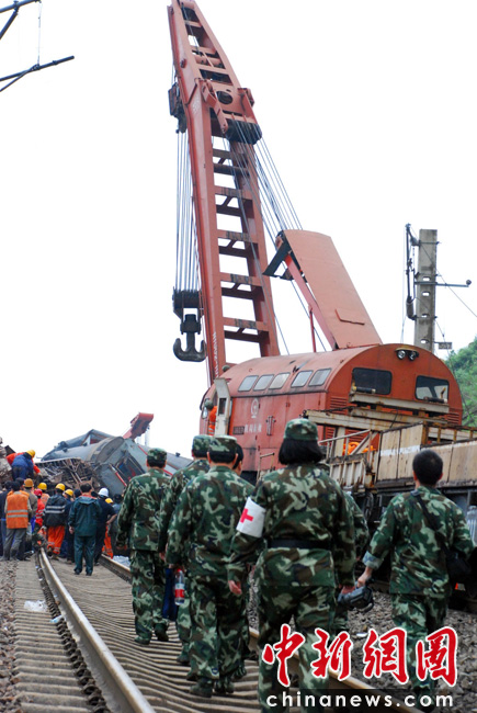 5月23日凌晨2時(shí)10分,滬昆鐵路江西東鄉(xiāng)段發(fā)生一起客運(yùn)列車脫線事故,截至上午9時(shí),已有10人遇難,車內(nèi)乘客全部被轉(zhuǎn)移,現(xiàn)場(chǎng)救援工作正在緊張進(jìn)行。事故發(fā)生后,南京軍區(qū)武警,江西省消防、交警,中鐵電氣化局、醫(yī)療等部門(mén)立即組織近萬(wàn)名人員參與搶險(xiǎn)救災(zāi),目前現(xiàn)場(chǎng)已有10余臺(tái)挖土機(jī)和吊車參與救援。中新社發(fā) 劉占昆 攝