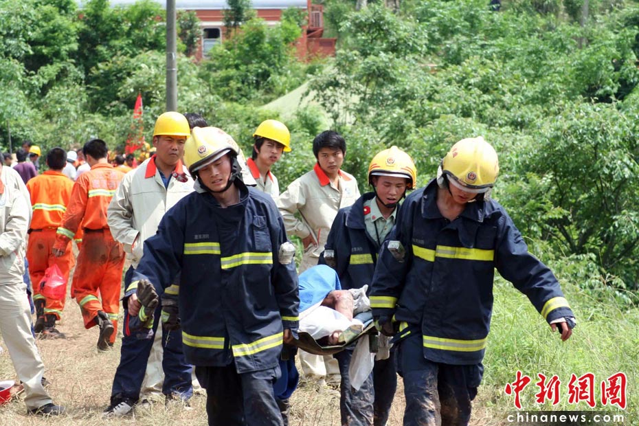 中新網東鄉(xiāng)5月23日電(艾永全 何柳斌 劉占昆)23日下午14時,距離滬昆鐵路客運列車脫線事發(fā)已經12小時,武警、消防、醫(yī)護、交警、特警仍在事故現場緊急救援。 艾永全 攝