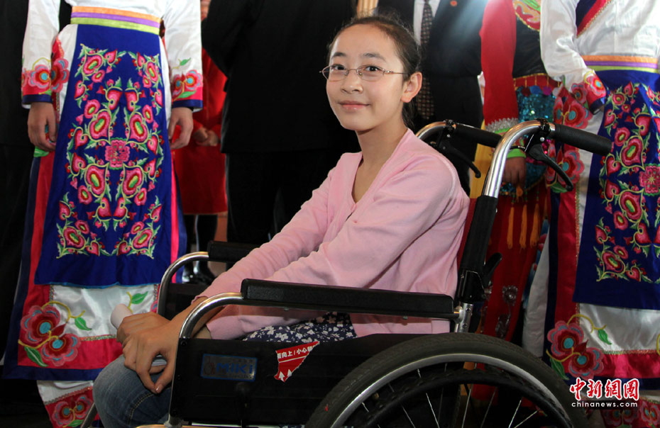 5月24日下午,“四川省感謝臺灣社會各界援助‘5.12’地震災(zāi)區(qū)見面會”在臺北舉行,汶川強(qiáng)震中失去一條腿的“芭蕾女孩”李月朗誦詩歌,向臺灣同胞致敬。 中新網(wǎng)記者 董會峰 攝