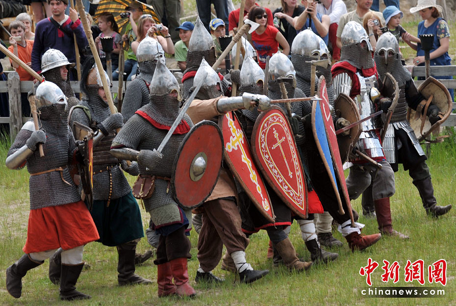 5月22日,在烏克蘭基輔郊區(qū)舉行的基輔羅斯節(jié)表演上,演出者再現(xiàn)了十三世紀(jì)的基輔羅斯戰(zhàn)役歷史場(chǎng)面。圖片來源:中國新聞網(wǎng)