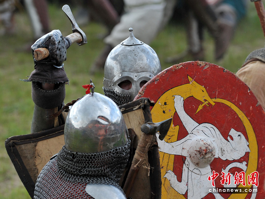 5月22日,在烏克蘭基輔郊區(qū)舉行的基輔羅斯節(jié)表演上,演出者再現(xiàn)了十三世紀(jì)的基輔羅斯戰(zhàn)役歷史場(chǎng)面。圖片來(lái)源:中國(guó)新聞網(wǎng)