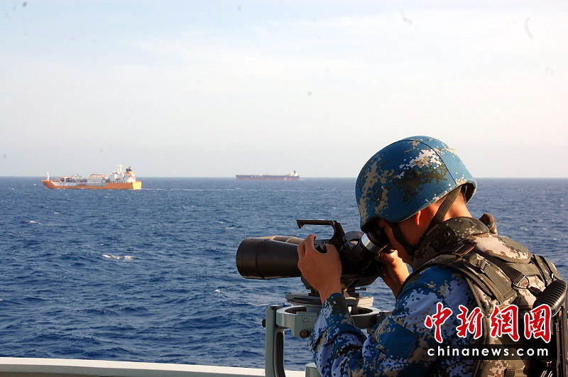 2009年1月29日,中國海軍首批護航編隊“武漢”艦收到希臘商船“ELENI G”號發(fā)出的緊急呼救。編隊立即派直升機載著特戰(zhàn)隊員前往救援,發(fā)現(xiàn)3艘海盜快艇正從不同方向圍攻希臘商船。特戰(zhàn)隊員發(fā)射信號彈,成功將其解救。船長激動的說:“感謝上帝!感謝中國海軍!”