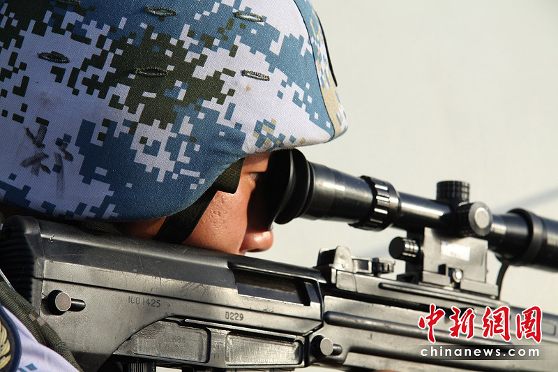 5月5日,特戰(zhàn)隊(duì)員在進(jìn)行瞄準(zhǔn)。胡軍 攝