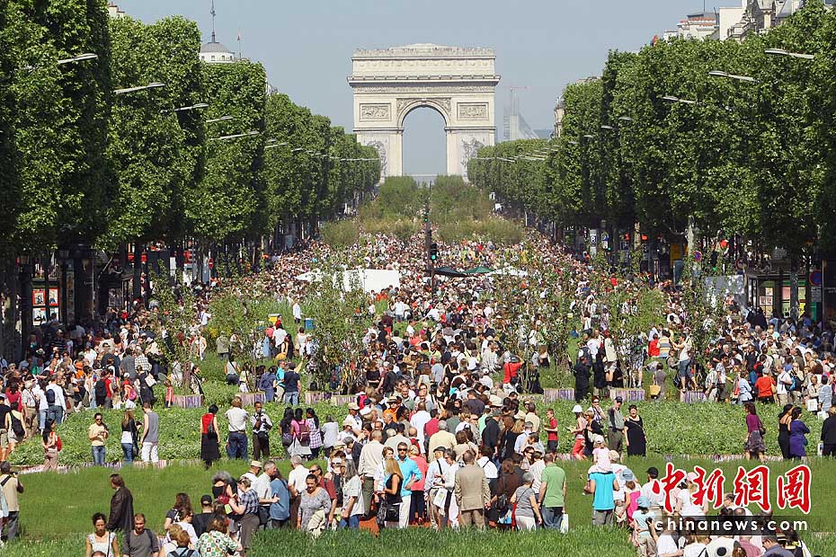 5月24日,法國總統(tǒng)薩科齊和妻子布呂尼參觀在法國巴黎舉行的“自然首都”展。該項展覽是由街頭藝術(shù)家加德·魏爾聯(lián)手法國“青年農(nóng)民協(xié)會”和林業(yè)協(xié)會共同發(fā)起的的,將百余種農(nóng)作物、樹木和動物“齊聚”法國首都巴黎的香榭麗舍大街,令這條“香街”變身“綠色的自然世界”。圖片來源:中國新聞網(wǎng)