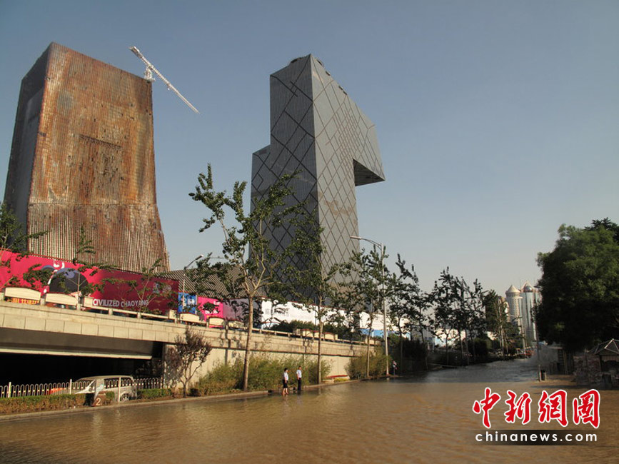 2010年5月25日下午4點(diǎn)半左右,北京京廣橋附近發(fā)生水管爆裂,水柱噴射到兩層樓高,流出的水已成河,造成東三環(huán)嚴(yán)重?fù)矶。沈?攝