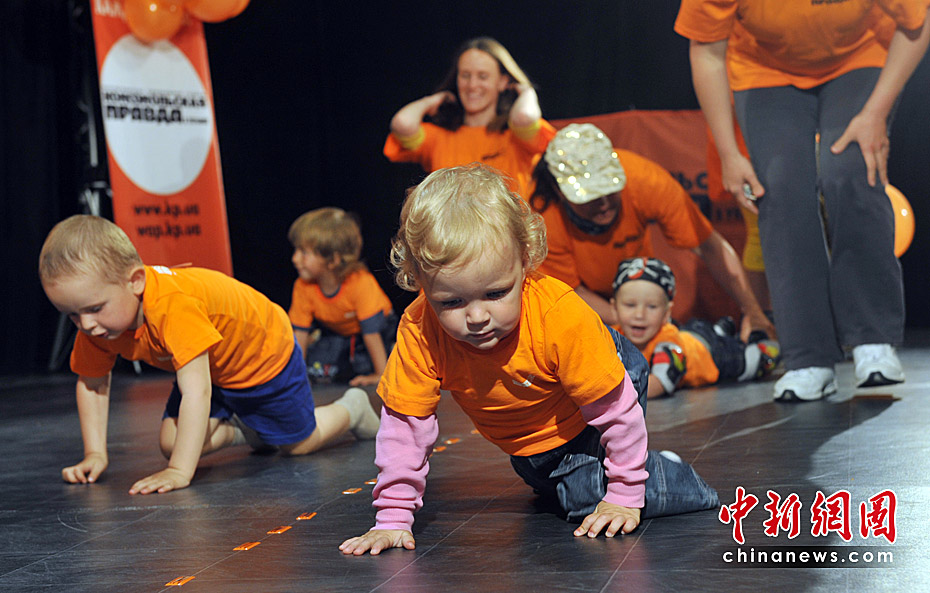 當?shù)貢r間5月31日,烏克蘭基輔舉行了寶寶爬行大賽。數(shù)十名嬰兒在母親的鼓勵下奮力向4米外的終點爬去。圖片來源:中國新聞網(wǎng)