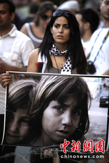 以色列海軍31日對國際人道救援船隊發(fā)動襲擊,船上至少有9名支持巴勒斯坦的活動人士被以軍打死,眾多國家和國際組織紛紛表示“震驚”,多國民眾走上街頭,對襲擊事件表示抗議。圖為在塞浦路斯,民眾在街頭游行抗議。