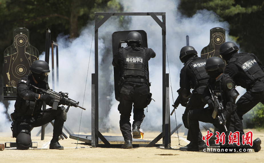 2010年6月1日,在韓國首爾,首爾防衛(wèi)部隊(duì)進(jìn)行了大型反恐軍事演練。