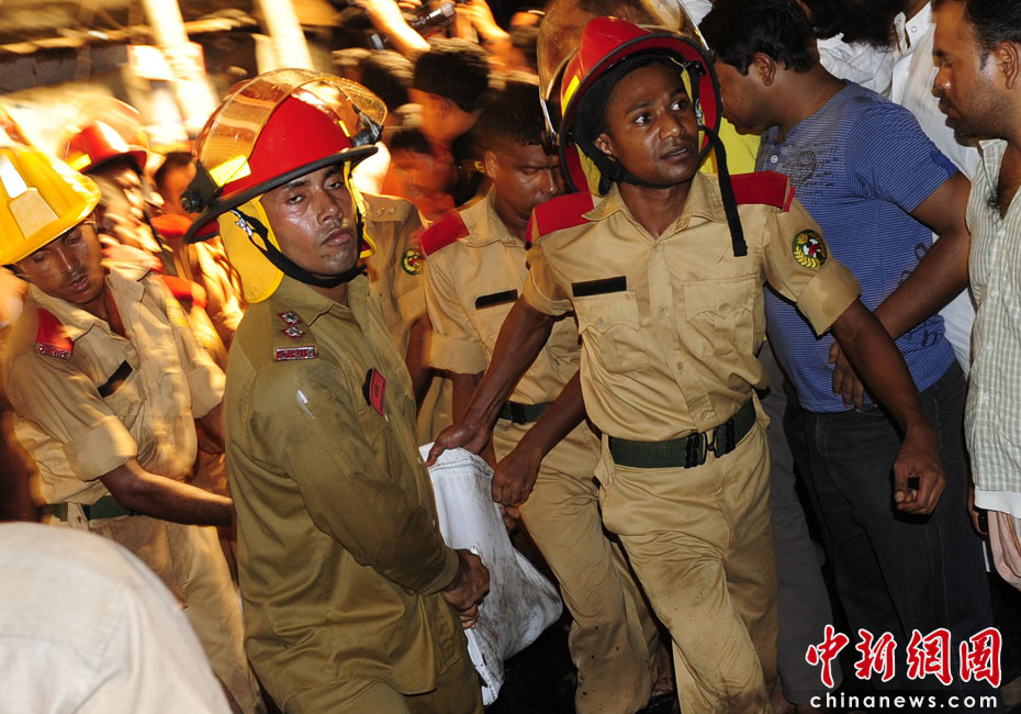 6月3日,孟加拉國首都達(dá)卡夜間發(fā)生一起重大火災(zāi),到目前為止已造成至少87人死亡,上百人受傷。圖為火災(zāi)現(xiàn)場(chǎng)消防員抬出一具遇難者遺體。圖片來源:中國新聞網(wǎng)
