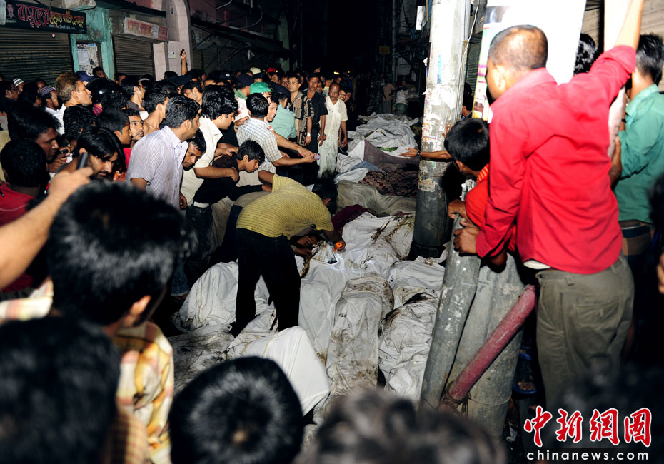 6月3日,孟加拉國首都達(dá)卡夜間發(fā)生一起重大火災(zāi),到目前為止已造成至少87人死亡,上百人受傷。圖為遇難者家屬辨認(rèn)火災(zāi)遇難者的遺體。圖片來源:中國新聞網(wǎng)