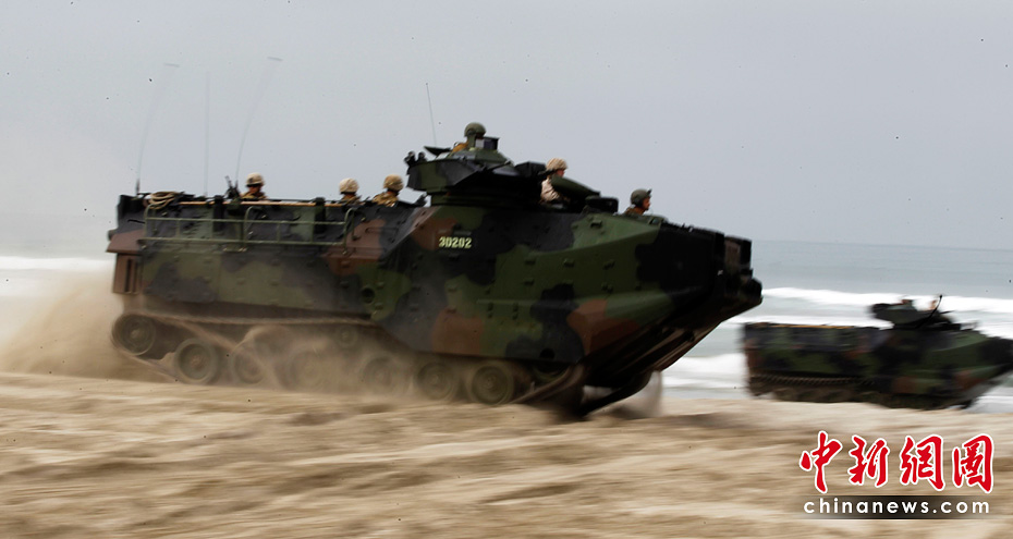 當(dāng)?shù)貢r(shí)間6月4日,約5000名水兵和陸戰(zhàn)隊(duì)員在美國(guó)加利福尼亞州舉行了代號(hào)為“黎明突擊”的搶灘登陸軍事演習(xí)。圖片來(lái)源:中國(guó)新聞網(wǎng)
