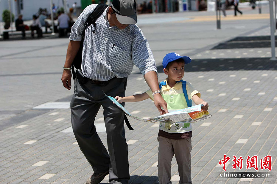 截至6月5日19點30分,上海世博會累計參觀者已超過1000萬人次。據(jù)悉,上海世博會的規(guī)劃用地為5.28平方公里,約242個國家和國際組織參展分布在浦東和浦西兩大區(qū)域。要想在這么大的地方找到自己想去的地方,那么世博地圖就是必須的裝備。圖為上海世博園內(nèi)游客正在地圖上尋找自己要去的地方。中新社記者 杜洋 攝