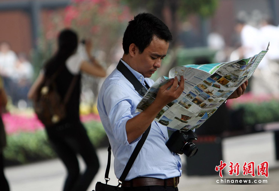 截至6月5日19點(diǎn)30分,上海世博會(huì)累計(jì)參觀者已超過1000萬人次。據(jù)悉,上海世博會(huì)的規(guī)劃用地為5.28平方公里,約242個(gè)國(guó)家和國(guó)際組織參展分布在浦東和浦西兩大區(qū)域。要想在這么大的地方找到自己想去的地方,那么世博地圖就是必須的裝備。圖為上海世博園內(nèi)游客正在地圖上尋找自己要去的地方。中新社記者 杜洋 攝