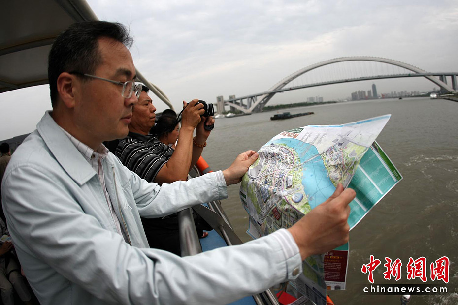 截至6月5日19點30分,上海世博會累計參觀者已超過1000萬人次。據(jù)悉,上海世博會的規(guī)劃用地為5.28平方公里,約242個國家和國際組織參展分布在浦東和浦西兩大區(qū)域。要想在這么大的地方找到自己想去的地方,那么世博地圖就是必須的裝備。圖為上海世博園內(nèi)游客正在地圖上尋找自己要去的地方。中新社記者 杜洋 攝