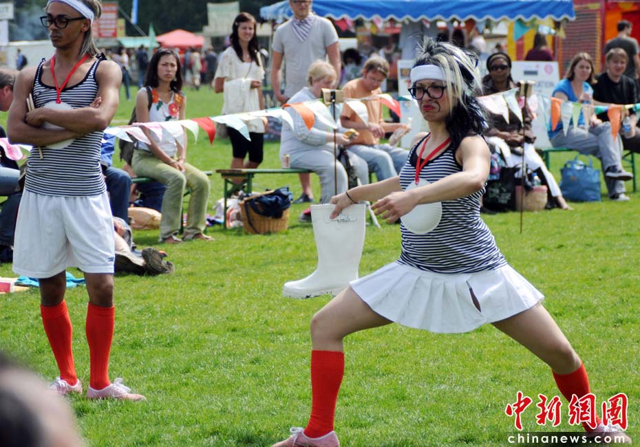 當?shù)貢r間2010年6月6日,英國倫敦舉行卡姆登綠色市集(Camden Green Fair),這是英國倫敦每年環(huán)保領域的“重頭戲”。本屆市集的主旨是要喚起大眾對環(huán)境問題的關(guān)注,選擇更加可持續(xù)發(fā)展的生活方式。據(jù)活動主辦方預計,本屆市集將吸引來自英國各地和世界各國的2萬多人參加。圖為活動志愿者組織大家玩兒傳統(tǒng)的夏季游戲“扔靴賽”。Fiona/攝 Fiona 馬小剛/文