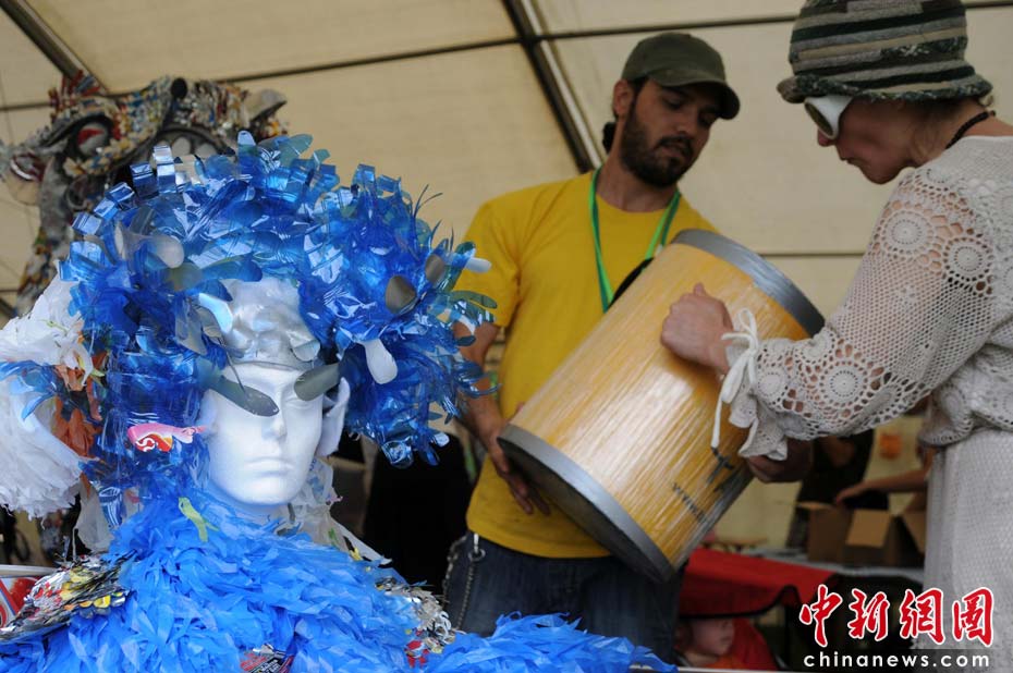 當(dāng)?shù)貢r(shí)間2010年6月6日,英國倫敦舉行卡姆登綠色市集(Camden Green Fair),這是英國倫敦每年環(huán)保領(lǐng)域的“重頭戲”。本屆市集的主旨是要喚起大眾對(duì)環(huán)境問題的關(guān)注,選擇更加可持續(xù)發(fā)展的生活方式。據(jù)活動(dòng)主辦方預(yù)計(jì),本屆市集將吸引來自英國各地和世界各國的2萬多人參加。圖為藝術(shù)家們用回收的塑料制品制作的時(shí)尚作品。仔細(xì)看還能找到“品客薯片”包裝的細(xì)微痕跡。Fiona/攝 Fiona 馬小剛/文
