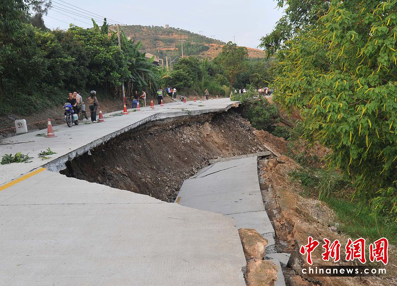 6月8日下午4點(diǎn)半,福建閩侯白沙鎮(zhèn)115縣道31公里處路面發(fā)生塌陷,路面整體下陷20多米,路基裂痕長達(dá)百米,所幸無人傷亡。圖片來源:CFP