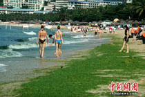 三亞海灘遭綠藻襲擊